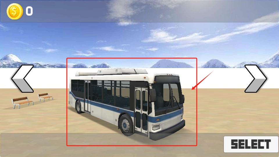 2、用左右箭头选好蓝白公交车,点SELECT确认选择。