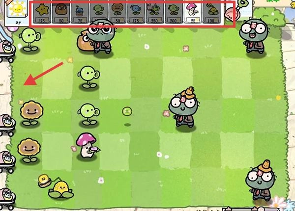 2. 从屏幕下方的植物卡牌里,挑选向日葵、豌豆射手等基础单位,为后续的布阵提前做好准备。