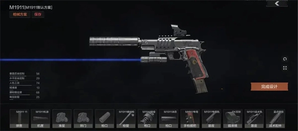 当然,武器功能还能进一步拓展。例如,为其装上战术轨,再插上蓝点镭指,能显著提升腰射时的稳定程度。武器原本配备的7发弹匣,也可替换为11发的加长弹匣。不过,在加装诸多升级配件后,枪械重量会增加,进而影响人机工效。这时,再给它安装一个M1911专用握把,一把堪称完全体的“满改”M1911手枪便诞生了。