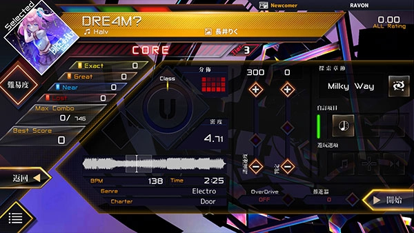 4、画面左侧显示歌曲的播放速度以及OverDrive剩余能量,右侧呈现的是NOVA当前状态。