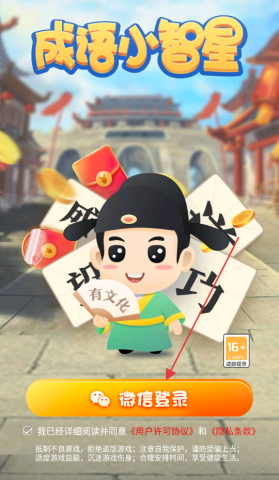 1、首先点击【微信登录】,勾选协议之后,进入《成语小智星》游戏界面。