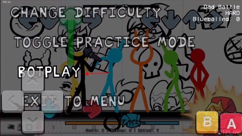 3、在进行对决时,点击返回按钮,随后找到“bot play”选项,这样就能开启自动模式。