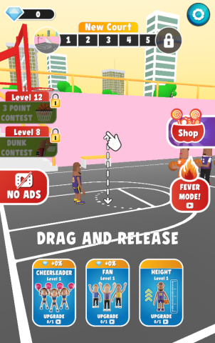 2、玩家仅需通过手指拖动游戏里的角色,把手中篮球朝着篮筐投出,便可获取相应得分,操作简便且乐趣十足。