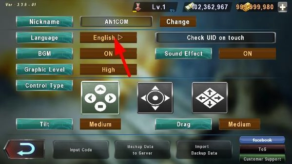 3、进入设置界面后,持续点击该按钮,直到出现简体中文。