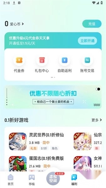 1、海量折扣游戏来袭,仅需1分钱就能入手价值648的游戏礼包。