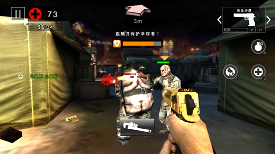 屏幕左半边区域为人物的移动区域,右半边则是人物的视角观察区。(相较于《死亡扳机1》,灵敏度有了大幅提升。)