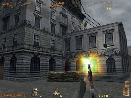 险象环生:刚来到池边,周围就布满了敌军。要特别留意从高台上跳下的浪人。顶楼放置着一把轻机枪,务必将其拿到手,随后登上高台。对付鬼子和自爆兵,使用步枪即可。至于战车与装甲车,无论是轻机枪还是火箭筒都能发挥作用。从高台下来,消灭防护栏内的敌军后,便会进入广场,届时将直面数量庞大的敌军精锐。当卡车开动时,需迅速换上冲锋枪,这样才能及时扫灭三个鬼子,转身之后要赶紧摧毁卡车,同时要小心左边的重机枪,会有鬼子钻进那里。