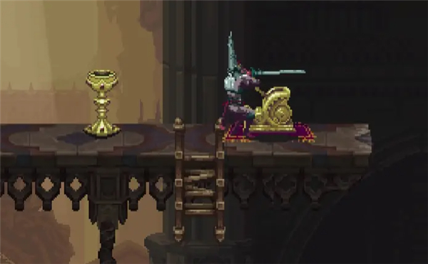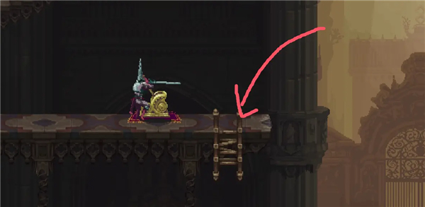 顺着梯子爬到下方的一个平台,接着往左边走,随后向上攀爬,便能抵达大教堂屋顶的存档点。