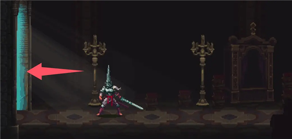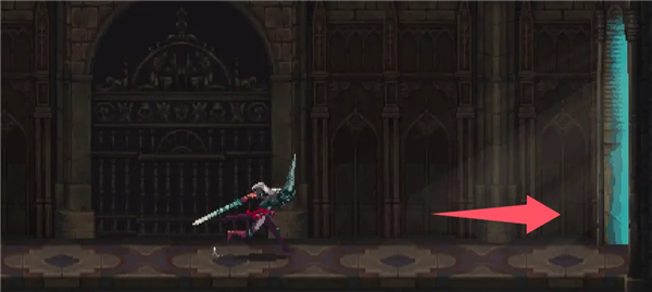 落下来之后,你会察觉到右边柱子的下方存在缝隙,能够通过滑铲穿过去。