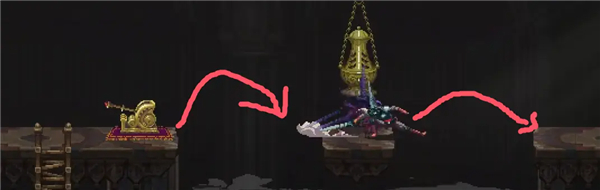 ⑦进入之后,首先清理跳跳怪(跳跳怪也可能会被晃来晃去的香炉消灭,不妨利用这一点)。接着在中间的红色台阶位置蹲守好,待香炉经过后,就开始向上行进。