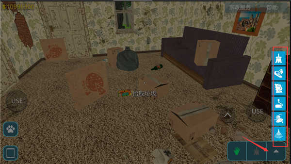 2、顺利进入房间后,点击右下角的图标,就能使用道具清扫垃圾。