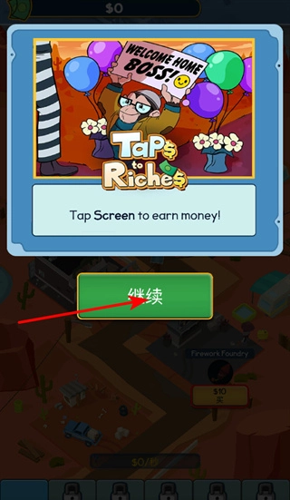 1. 开启游戏,轻点继续按钮,即可进入游戏主场景,踏上致富之旅。