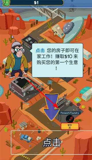2. 购买生意:点击提示的生意,比如烟花铸造厂,花费相应金额购买首个生意。