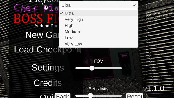 启动班班幼儿园4后,在进入游戏前,你可以点击“settings”选项,对游戏的画质、视角等参数进行调整。