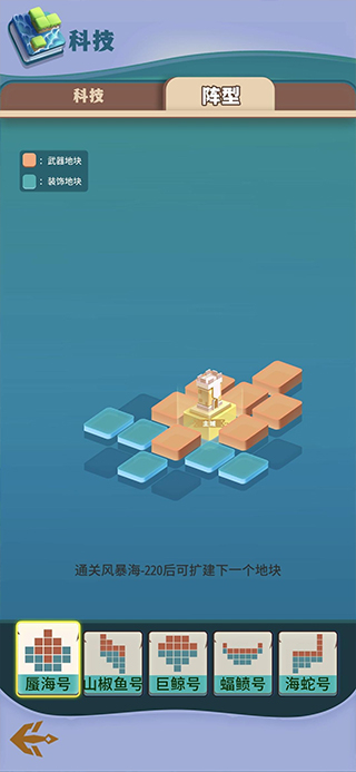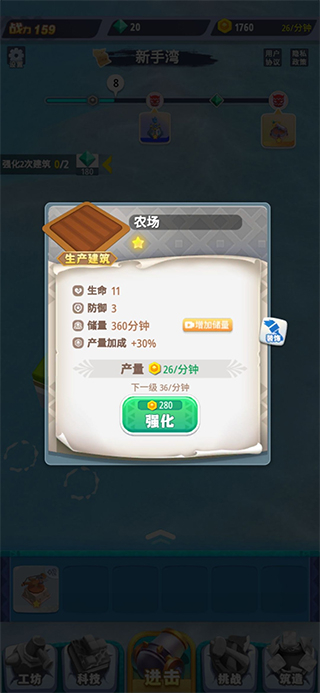玩家需要搭建专属的浮岛家园,在有限的地块空间里合理规划布局——军事建筑是作战的必备条件,生产建筑则负责保障后勤供应。