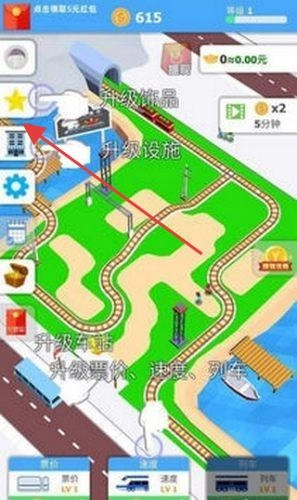 进入游戏界面后,点击左侧带有星星标识之类的功能按钮,查看可升级的饰品等相关内容,以此提升车站的外观。