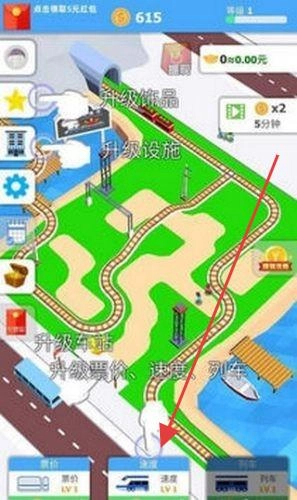 在下方选择“速度”等列车相关的升级选项,消耗金币来提升列车的运行效率,从而优化运营。