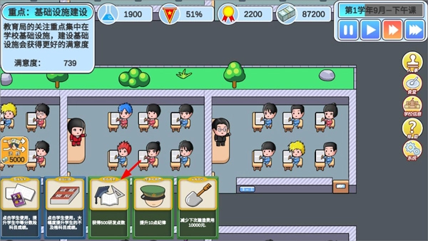 游戏开启后,会出现这样贴心的小提示,帮助玩家更有效地管理学校。