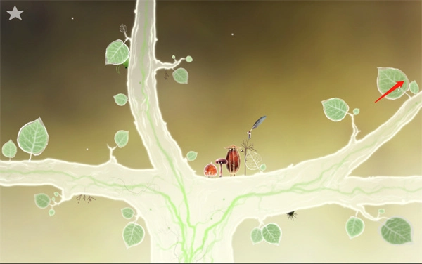 抵达树枝的尽头,那里有一片泛黄的叶子,点击它便会出现一只体型较大的蜜蜂,它会吐出第一根羽毛,羽毛随后掉落到下方一层的树洞里。