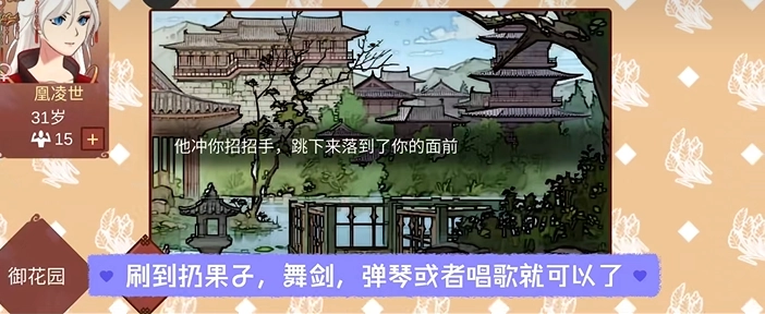 刷到扔果子、舞剑以及弹琴唱歌的剧情就可以了