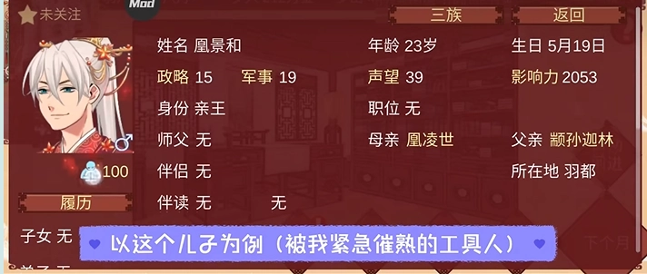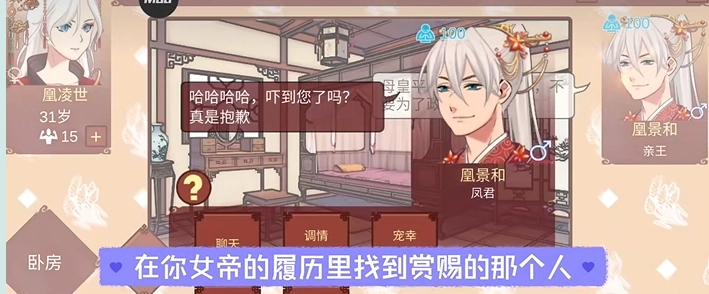 在女帝的履历中找到曾获赏赐的那个儿子,点击对他进行宠幸操作,点击一次后,宠幸按钮就会消失。