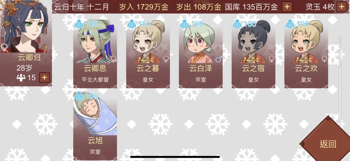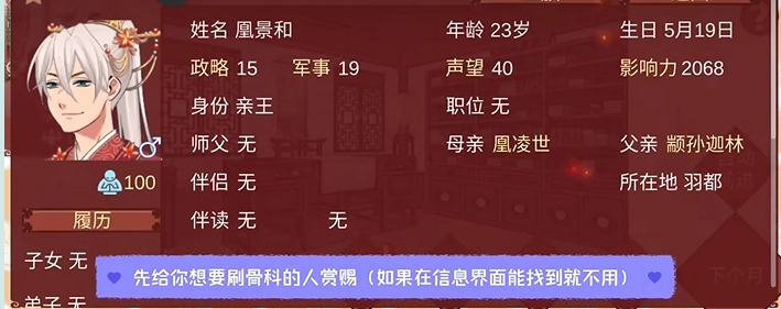 随机怀孕的情况是,不少时候召见一次就怀上了,不过可能随着生育次数增多,需要多召见几次才会怀孕,这样多刷几次就能刷新孩子的性别了。