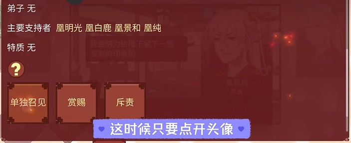 之后点击这个儿子的头像,选择单独召见,重复该操作即可快速刷新骨科相关内容。