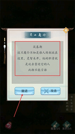 当遭遇【灵山魔仆】时,若自身实力尚未达到【筑基期】,建议优先选择撤退,以免因战斗损耗对后续探索造成不利影响。