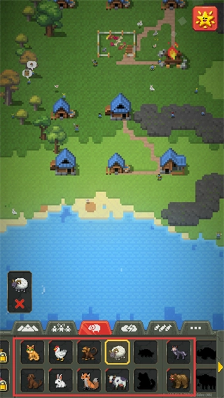 在生物选择界面,点击【羊】【猫】【鸡】之类的图标来投放生物,以此丰富世界的生态环境,为后续文明的发展打上坚实基础。