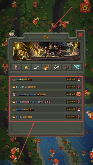 打开历史界面,查看【Zamid村镇已建立】【Portodillo王国已建国】等相关事件,以此了解文明的发展进程。