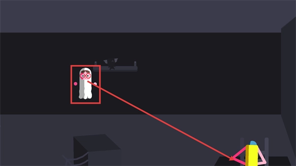 操控手持工具的角色,留意场景里的【幽灵装扮-红眼镜角色】,跟着指引移动,推进当前暗黑风格的场景关卡。