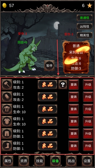 在【装备】界面挑选装备后,通过【重铸】或【升级】功能对其进行操作,以此提升装备的各项属性,进而增强战斗时的攻击与防御能力。