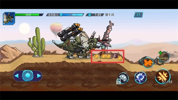 在成功击败敌人之后,机甲便朝着红框所圈定的金币区域移动过去,将那里掉落的金币道具拾取起来。