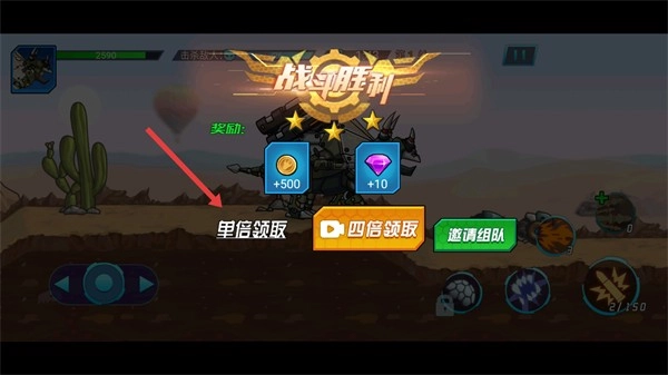 关卡胜利后,点击【单倍领取】按钮获取奖励,即可完成本次关卡挑战。