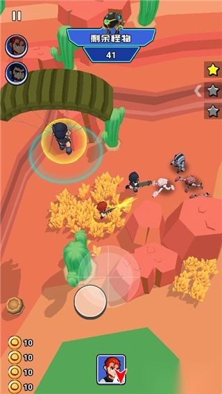 《荒野大作战》作为一款射击类游戏,玩家需按照关卡的先后顺序逐步推进闯关进程。在游戏里,玩家负责操控角色移动,而角色在移动过程中会自动对敌人发起攻击。当遭遇难以直接战胜的对手时,玩家可以借助占据有利地形的方式来规避敌人的攻击,进而伺机歼灭敌人。此外,游戏还提供了具有个性的角色以及丰富多样的武器道具供玩家体验,新推出的角色所具备的技能会有所强化,并且不同武器的杀伤力也存在差异。