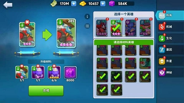 本文不涉及神秘系与外星系的抽卡概率及养成难度,仅简要介绍英雄合成的条件。
