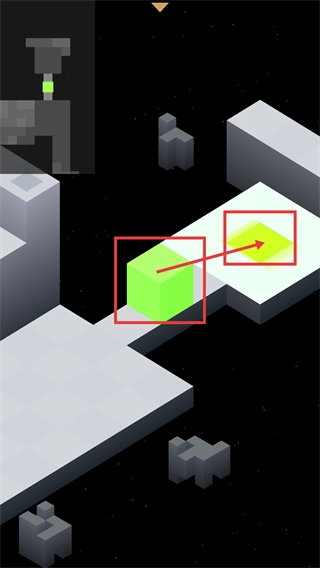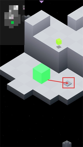 操控【绿色方块】移动到【灰色平台】的位置,以此触发场景互动,推动关卡解谜的进程。