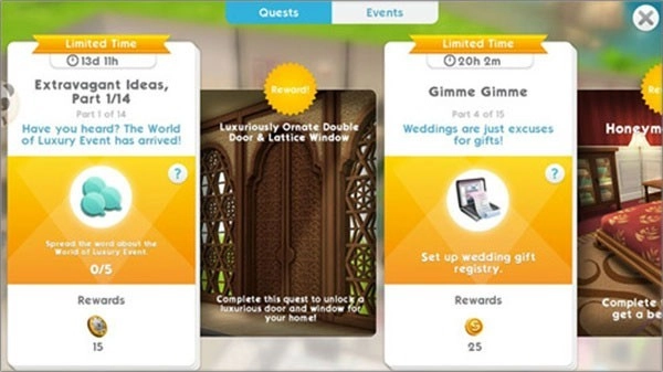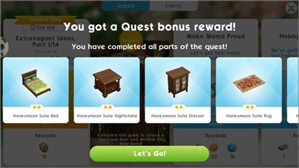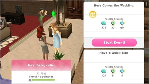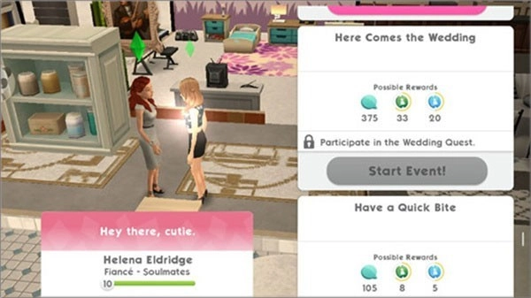 第一次结婚需要完成婚礼任务,在限定时间内做完就能获得一套家具奖励。