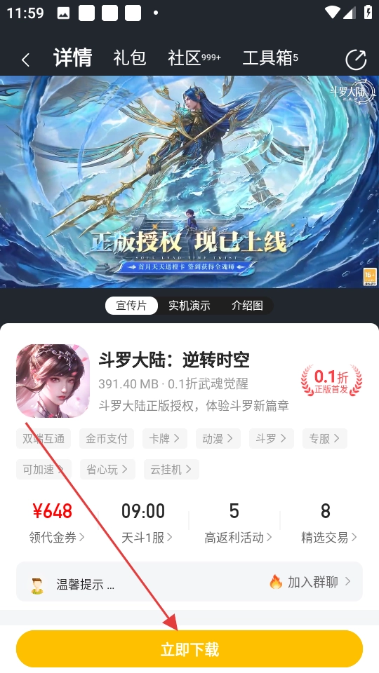 进入游戏详情页后,点击【立即】,可该游戏哦。