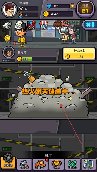 消耗金币解锁餐厅,继续拓展避难所的房间设施。