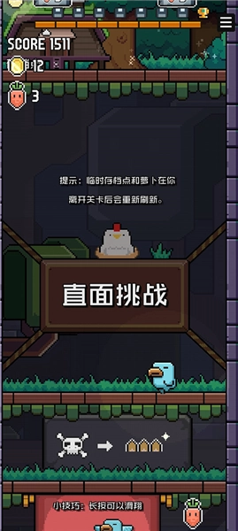 持续向前冲刺高分:在游戏里得不断操控小鸟往前飞,这样才能积累分数、挑战更高成绩。
