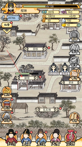 在游戏主界面中,点击驿馆建筑即可进入对应的界面,进行结交等操作,从而提升知府的相关属性。