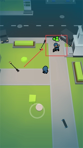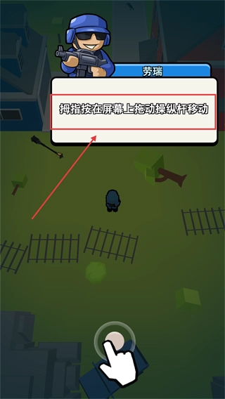 操控【劳瑞】时,用拇指在屏幕上拖动摇杆来控制角色移动,通过灵活调整位置来应对僵尸的威胁。