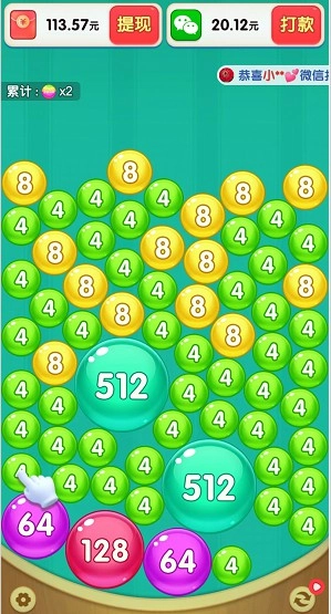玩家可以不断合成小球,持续获取红包,红包金额满0.3即可提现。