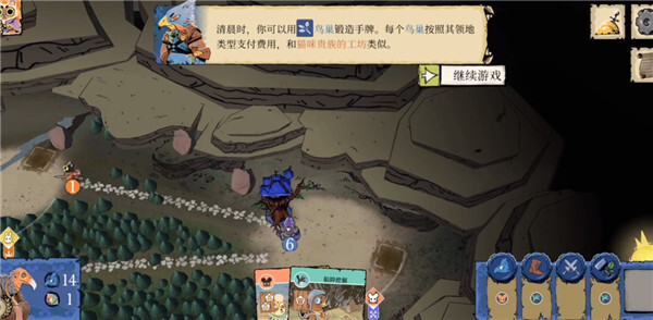 4个回合就能拿到14分,原因是鸟巢一旦建造完成就可以不用再管它了。要是过程中有不太会玩的玩家把你的鸟巢拆了,让你的动乱时间往后推,那得分也会跟着延迟。而且你建的鸟巢越多,锻造道具的速度就越快,就连移除民意的时候还能额外加1分呢。