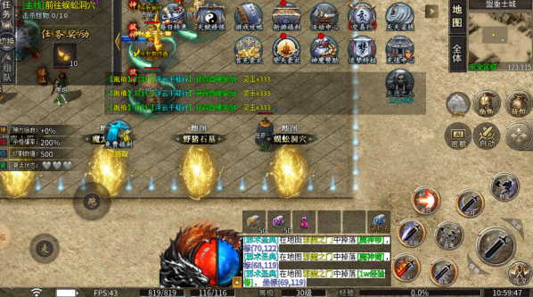 3、核心玩法为无限制自由PK,野外地图、竞技场、攻沙战场等场景皆可随时开战,成功击败对手有概率获得极品装备掉落。