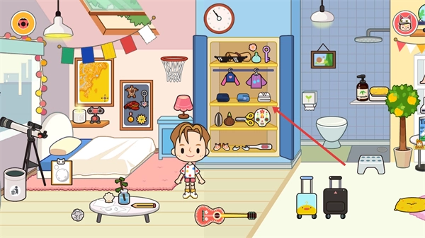 2、在室内场景中点击蓝色衣柜,打开衣柜查看物品。