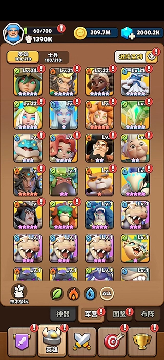 4、玩家若想闯过更多试炼之塔的关卡,就得拥有强力卡牌。可以去商店抽取英雄卡牌,再到军营对其进行强化升级,还能给卡牌搭配战斗中获取的装备来提升属性,以此获得更多强力卡牌。