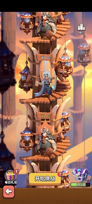玩家若想开启“试炼之塔”副本玩法,需先通过2-10关卡,之后开启【挑战】模块,点击即可进入试炼之塔。