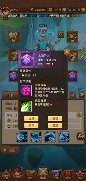 1、DIY英雄培养,神器助力,攻防辅组建超强战队。
